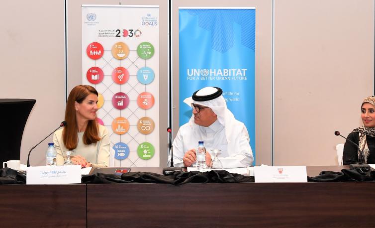 كما أشادت رئيسة برنامج الأمم المتحدة للمستوطنات البشرية (الموئل)البشرية الدكتورة فيرناندا لوناردوني بالتقدم الملحوظ الذي شهدته مملكة البحرين على صعيد التنمية المستدامة، مؤكدة على حرص البرنامج على مواصلة التعاون مع الوزارة في شتى البرامج والمجالات بما يحقق أهداف التنمية المستدامة.