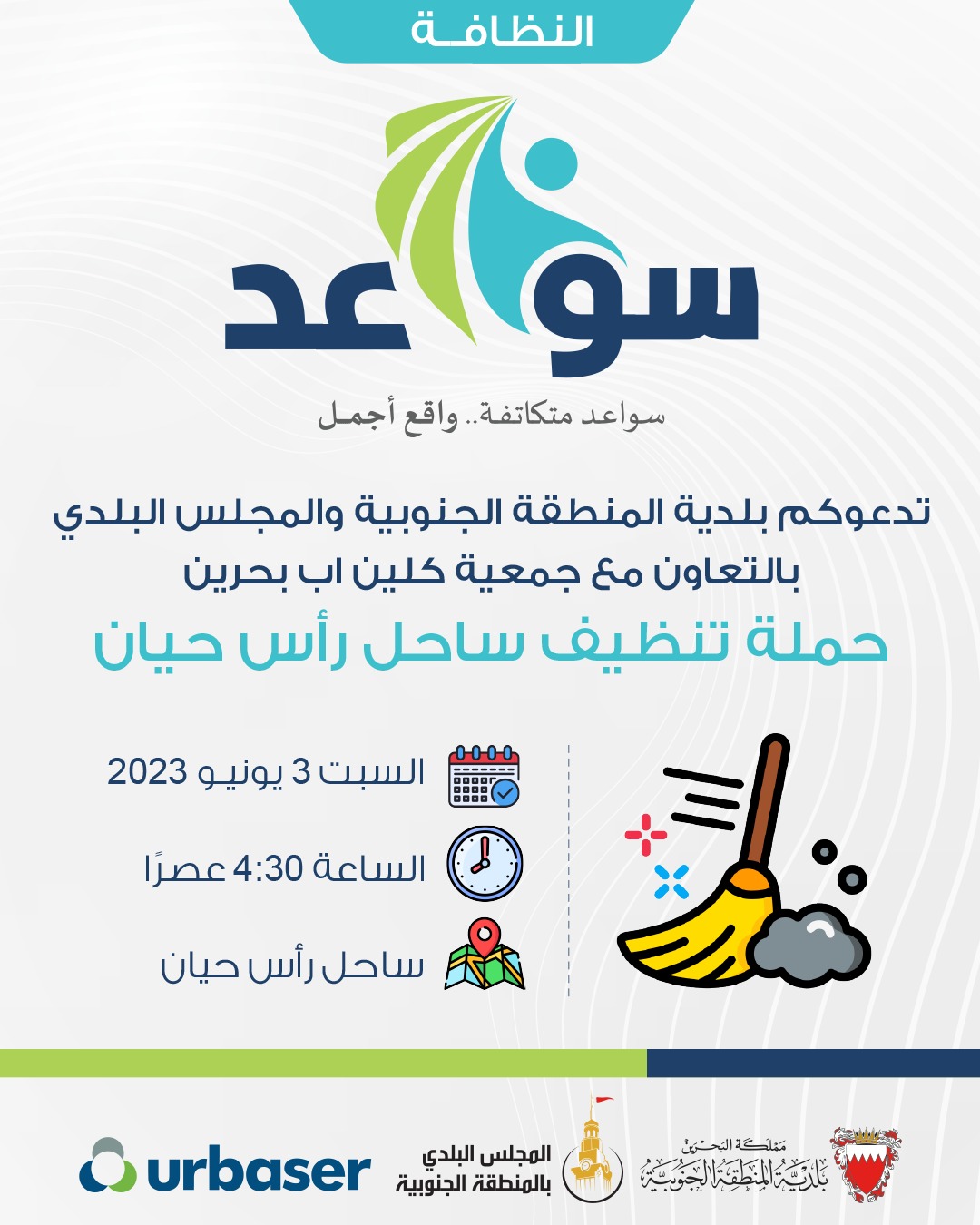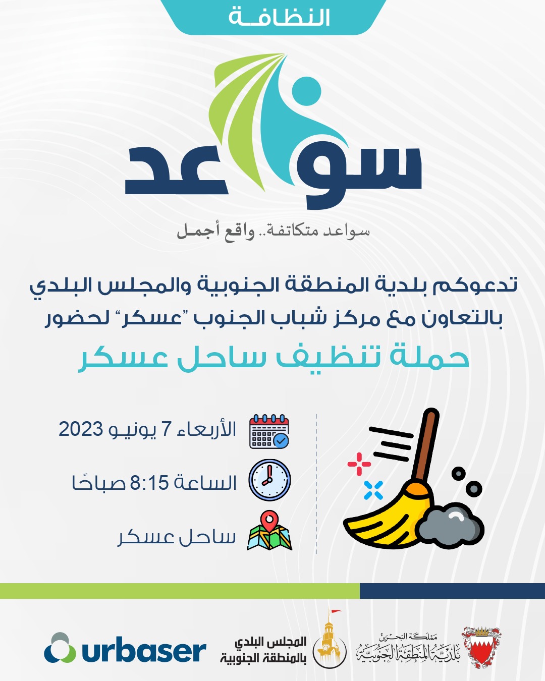كشف سعادة المهندس وائل بن ناصر المبارك وزير شؤون البلديات والزراعة عن إطلاق عدد من الفعاليات المجتمعية بالتعاون والتنسيق مع مجلس أمانة العاصمة والمجالس البلدية الثلاثة تحت شعار ( سواعد) وذلك بهدف زيادة الوعي لدى المجتمع بأهمية المبادرات المجتمعية.