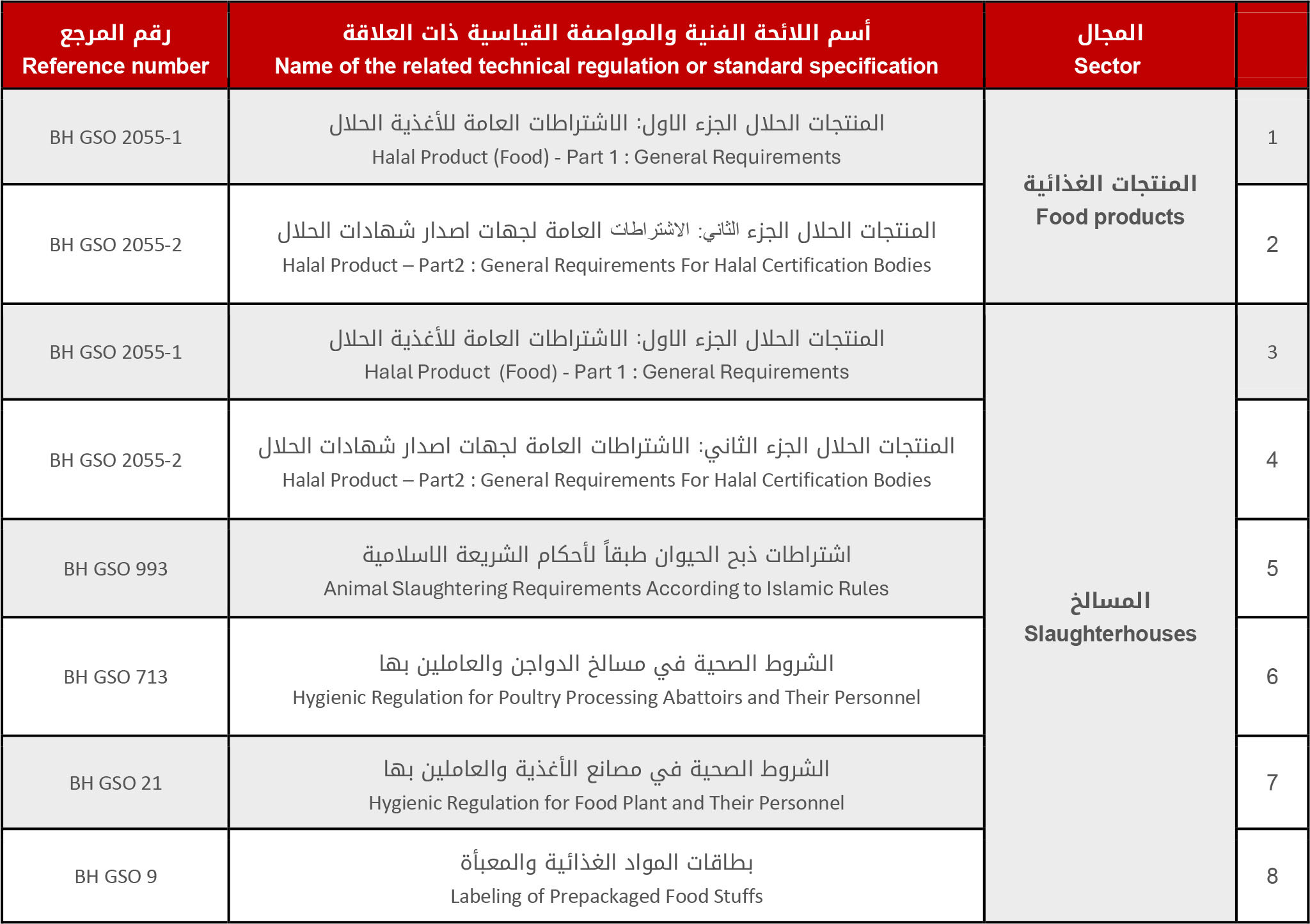 تتبنى مملكة البحرين منظومة وطنية متكاملة لمنتجات الحلال، تتوافق مع المتطلبات الخليجية المنظمة لعمليات الذبح والإنتاج وفقاً لأحكام الشريعة الإسلامية. وتشمل هذه المنظومة كذلك المتطلبات الفنية والتنظيمية الخاصة بالمنشآت والأفراد العاملين في أنشطة الحلال لضمان الالتزام بأعلى معايير الجودة والموثوقية.