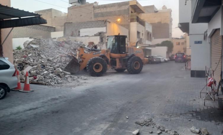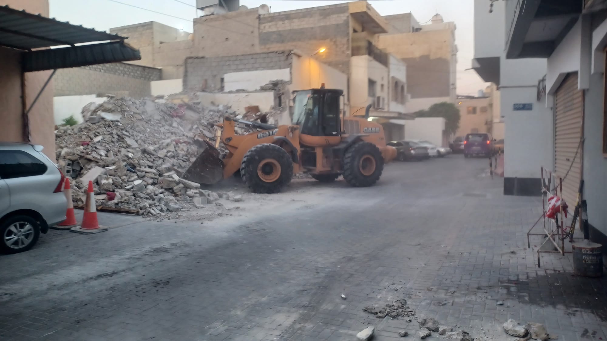 بلدية المحرق تقوم بهدم منزل آيل للسقوط في منطقة المحرق طريق 308 مجمع 203