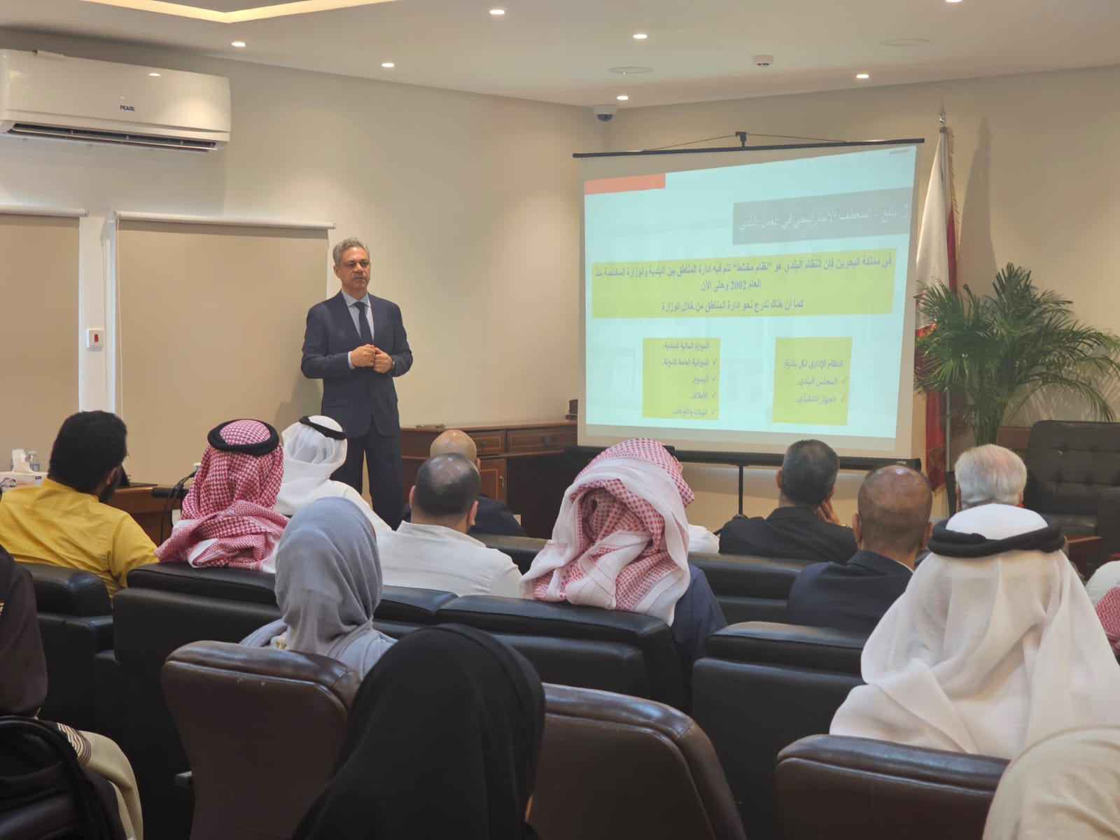ومن جانبه استعرض الدكتور محمد علي حسن لمحة تاريخية لتأسيس العمل البلدي في مملكة البحرين متطرقاً في ذلك أهم المحطات التاريخية في مسيرة العمل البلدي في البحرين مشيرياً إلى رؤساء البلديات والوزراء السابقين الذين تركوا بصماتهم التاريخية في التجربة البلدية.