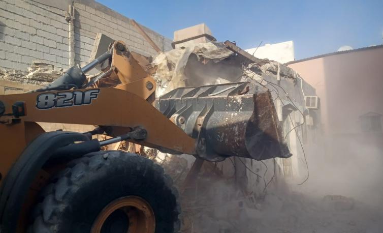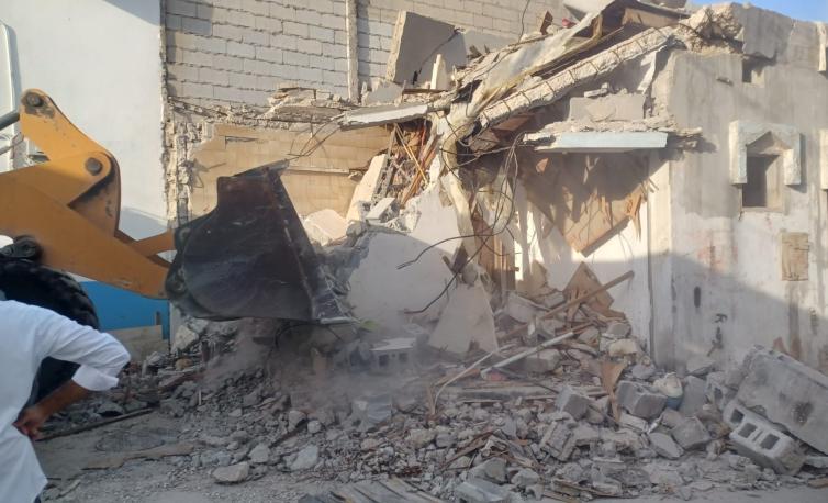 بلدية المحرق تقوم بهدم عقار آيل للسقوط بمنطقة المحرق مجمع 209